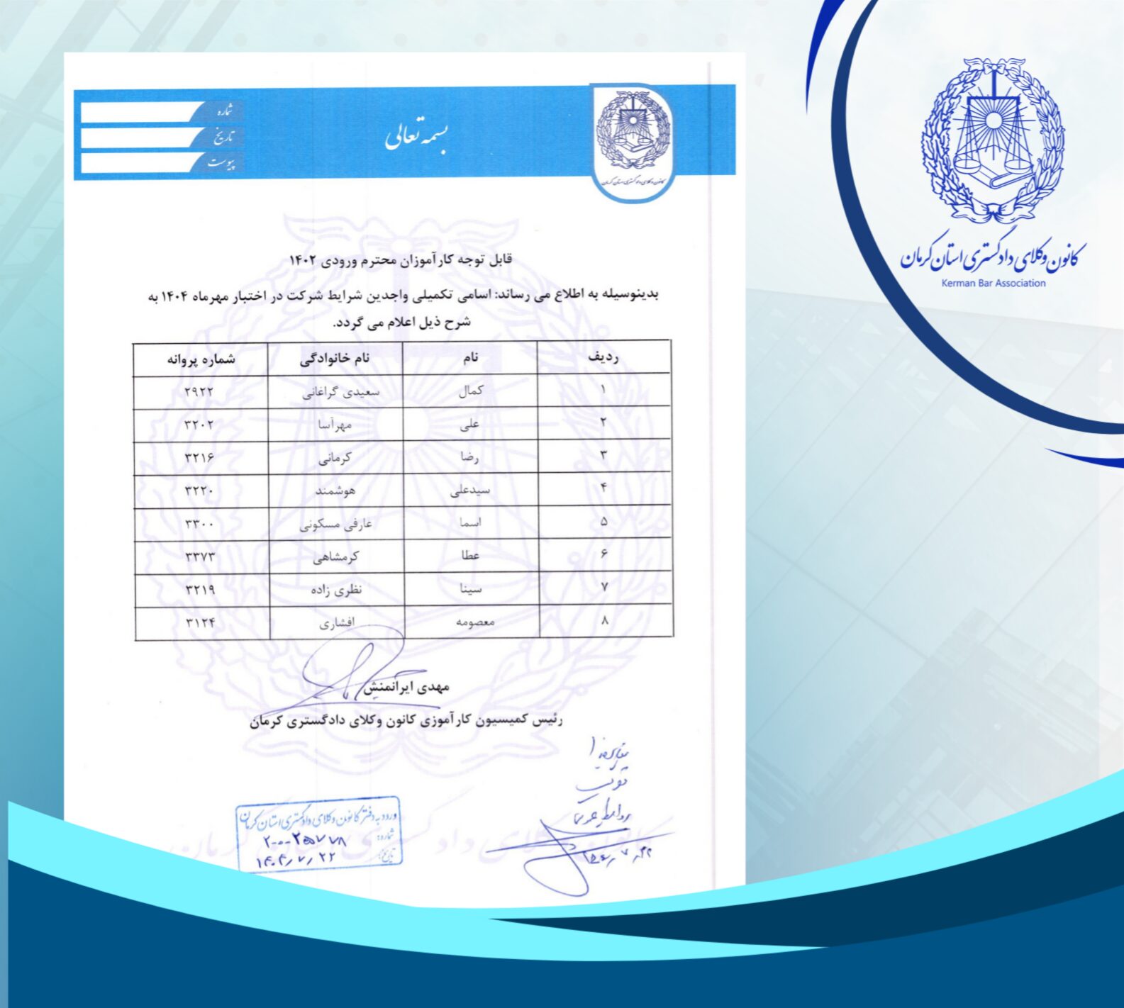 📌اسامی تکمیلی کارآموزان واجد شرایط