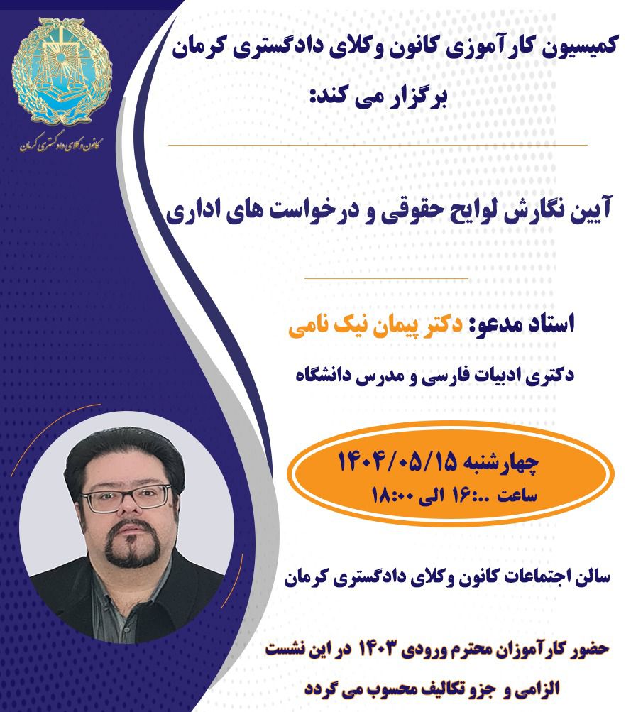 به همت کمیسیون کارآموزی کانون وکلای دادگستری استان کرمان و تدریس استاد محترم دکتر پیمان نیک نامی