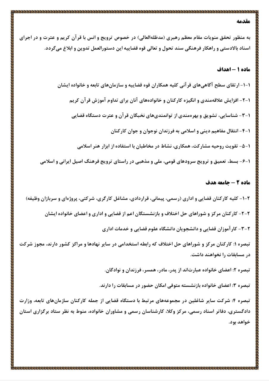 پیرو اطلاعیه پیشین در خصوص برگزاری یازدهمین دوره مسابقات سراسری قرآن و عترت ویژه کارکنان و خانوادههای قوه قضائیه و همچنین وکلا و خانوادههای محترم ایشان در سال ۱۴۰۴، به استحضار میرساند: