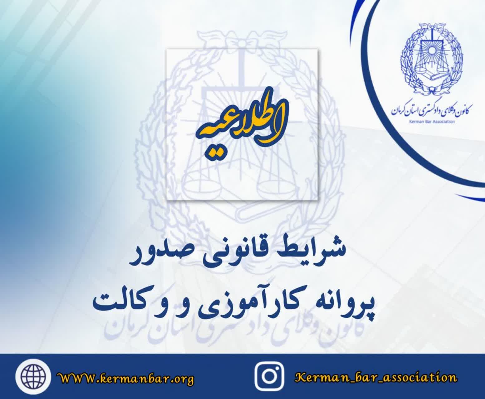 🔹️به اطلاع متقاضیان شرکت در آزمون وکالت، کارآموزان و وکلای محترم میرساند؛ طبق ماده ۱۰ لایحه قانونی استقلال کانون وکلا و مواد ۴۳ و ۴۴ آییننامه لایحه صدرالوصف، صدور پروانه کارآموزی و اشتغال به حرفهی شریف وکالت مقید به عدم اشتغال به مشاغل دولتی و سایر ارگانها و نهادهای مذکور در بند ۲ ماده ۱۰ لایحه میباشد. ارائه مدارک مثبته مشمولین این مواد به کانون، شرط صدور پروانه وکالت است. سایر همکاران نیز مکلفند نسبت به تطبیق شرایط خود با مواد قانونی صدرالوصف اقدام نمایند.
