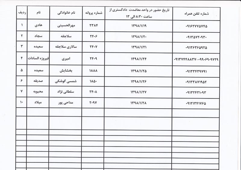 لیست اسامی وکلا و کارآموزان محترم معرفی شده به دادگستری کل استان کرمان جهت ارائه معاضدت قضایی – فروردین ماه 1398