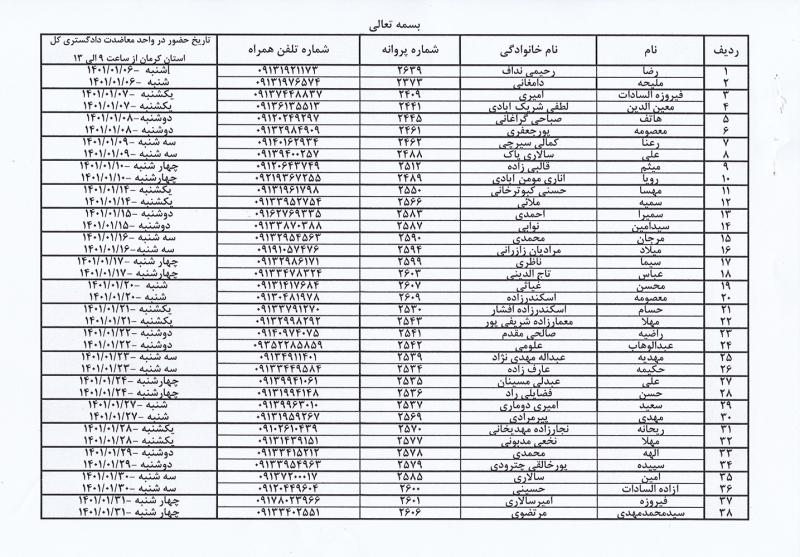 لیست اسامی وکلا و کارآموزان محترم معرفی شده به دادگستری کل استان کرمان جهت ارائه معاضدت قضایی – فروردین ماه 1401