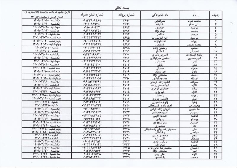 لیست اسامی وکلا و کارآموزان محترم معرفی شده به دادگستری کل استان کرمان جهت ارائه معاضدت قضایی – خرداد ماه 1401