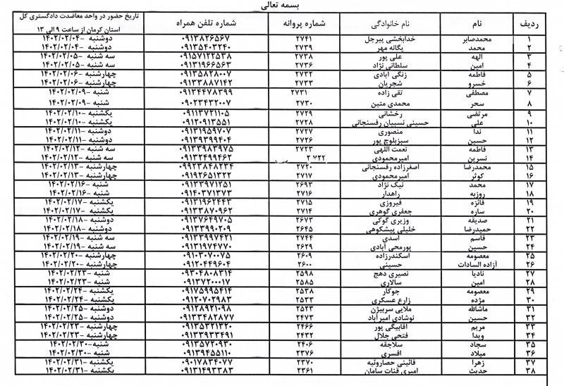 لیست اسامی وکلا و کارآموزان محترم معرفی شده به دادگستری کل استان کرمان جهت ارائه معاضدت قضایی – اردیبهشت ماه 1402