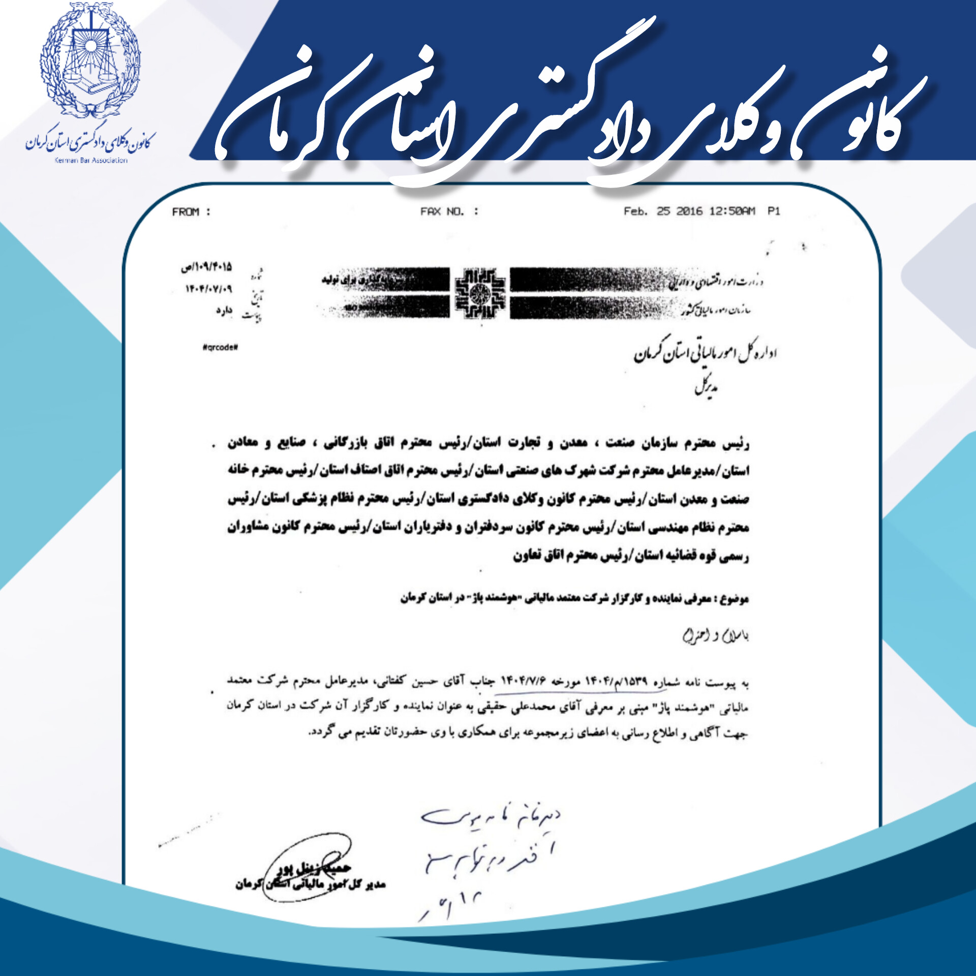 📎 نامه اداره کل امور مالیاتی استان کرمان جهت بهره برداری همکاران،اطلاع رسانی میگردد.